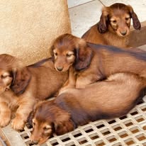3,3 hübsche rote Zwergteckelwelpen aus Woopy von Charlottenhof L/Zw,rot & Grisu vom Auglweiher FCI,L/Kt,rot (Bes.K. Strauch)